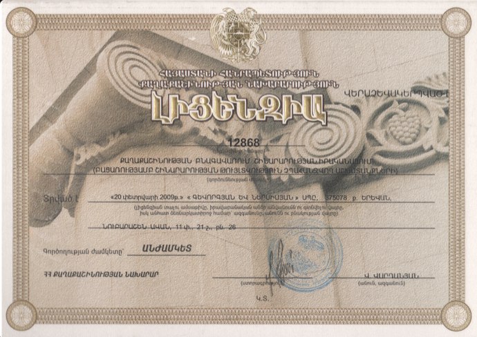 Կազմակերպությունն ունի շինարարական ոլորտը կարգավորող անհրաժեշտ բոլոր լիցենզիաները, մասնավորապես՝